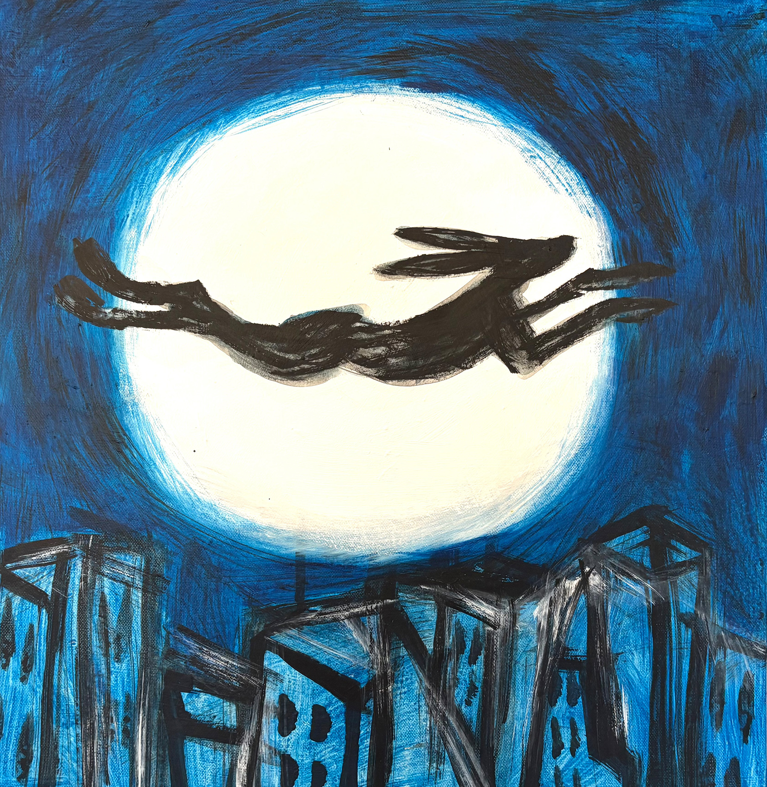 Acryl, Kohle, Schellack auf Leinwand